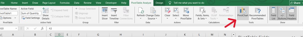Now we turn those Pivot Tables into visual charts. Click anywhere inside a Pivot Table, then go to Insert → PivotChart. Choose your chart type: