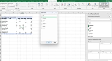 This is where the magic happens. Slicers are visual filter buttons that let you click to filter your entire dashboard — no formulas, no VBA, no coding.
