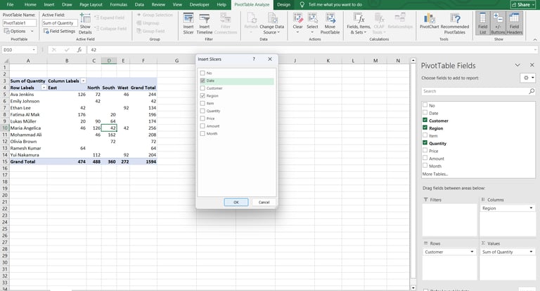 Now when someone clicks "North" on the Region slicer, every chart on your dashboard instantly updates to show only North Region data. No VBA required.