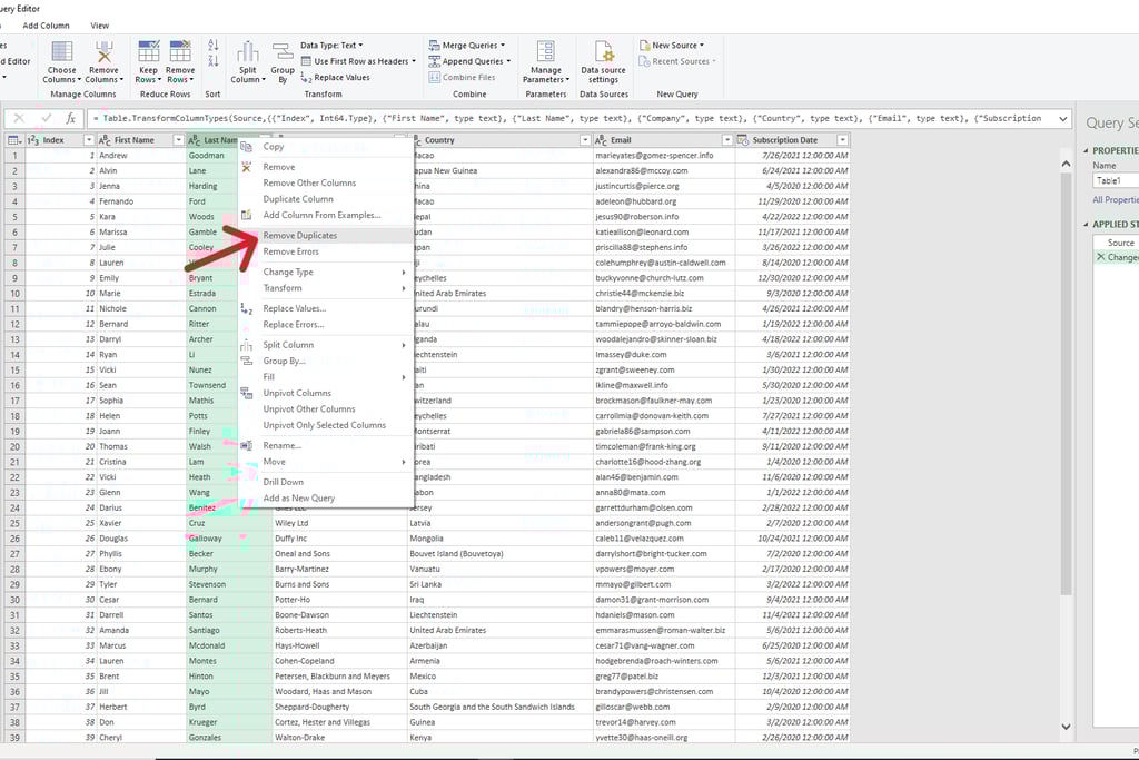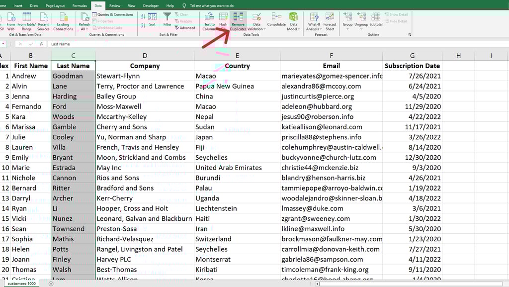 Select Remove Duplicates.