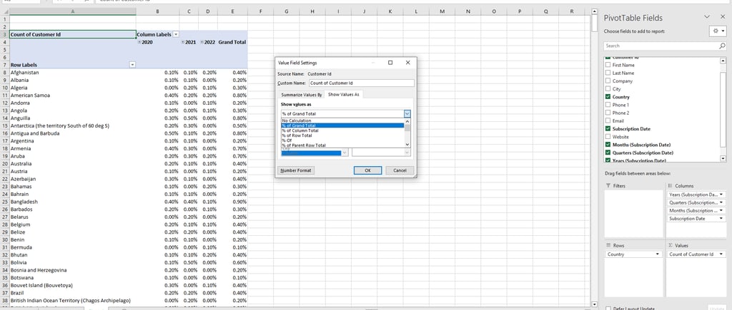 Group by Date: Right-click any date in your Pivot Table and select Group. Choose "Months" and "Years." Instantly, 50,000 rows become a clean monthly trend.
