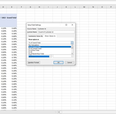 Show Values As %: Want to know which region contributed most? Right-click a Sales number > Show Values As > % of Grand Total.