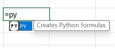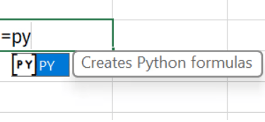 To start your first experiment, simply click a cell and type: =PY followed by a Tab.